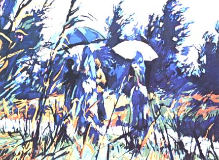 work . . . umbrellas protecting from the mid-day sun . . . . . a Southern Italian scene often painted by Simbari . . . Remembering his early days in Calabria ! . . . “Les Parapluies”