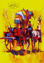 Talking of ‘menus’ - - - ! Here is the cover for the Menu of ‘Il Fico’, a long-time favourite eating-place for Actors and Directors from Cine Citta, - - and us (!). Nicola made a small oil painting for his friends, Mirella and Claudio Ciocca, who owned “Il Fico” [and still do!] and they used it [with his permission] for their very Roman menu - - -